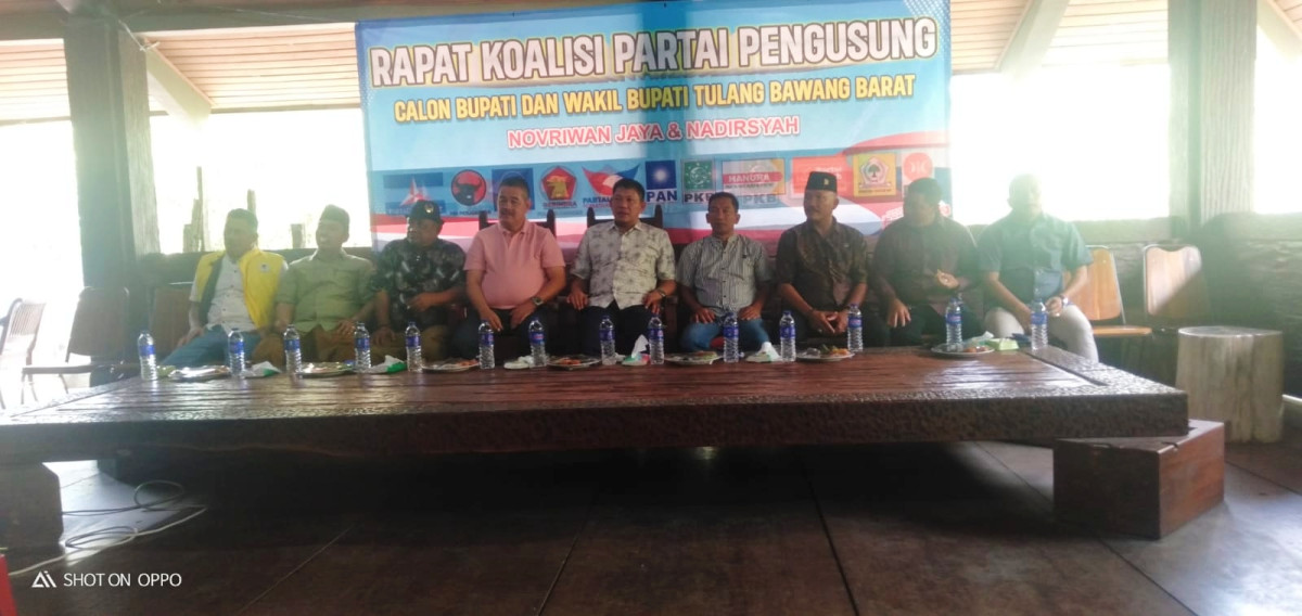 MEDIAANDALAS.NET, TUBABA – Puluhan Partai koalisi pengusung dan relawan bakal calon Bupati dan Wakil Bupati Kabupaten Tulang Bawang Barat (Tubaba), Novriwan Jaya- Nadirsyah (NONA) lakukan rapat koordinasi persiapan pemantapan menjelang pendaftaran di Komisi Pemilihan Umum Daerah (KPUD) kabupaten setempat. (Selasa, 27/08/2024)