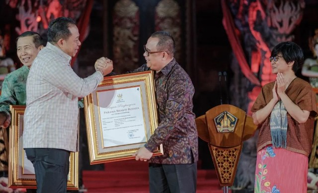 Piagam penghargaan tersebut diberikan oleh Pj. Gubernur Bali Sang Made (SM) Mahendra Jaya pada penutupan kolaborasi kegiatan (Bali Digifest, Festival Seni Bali Jani, dan Bulan Kebangsaan) di Ardha Candra, Taman Budaya Denpasar, Bali, Selasa (20/8).
